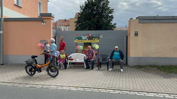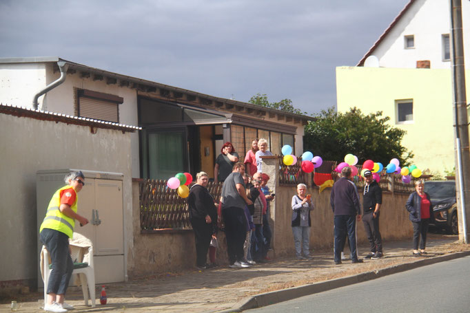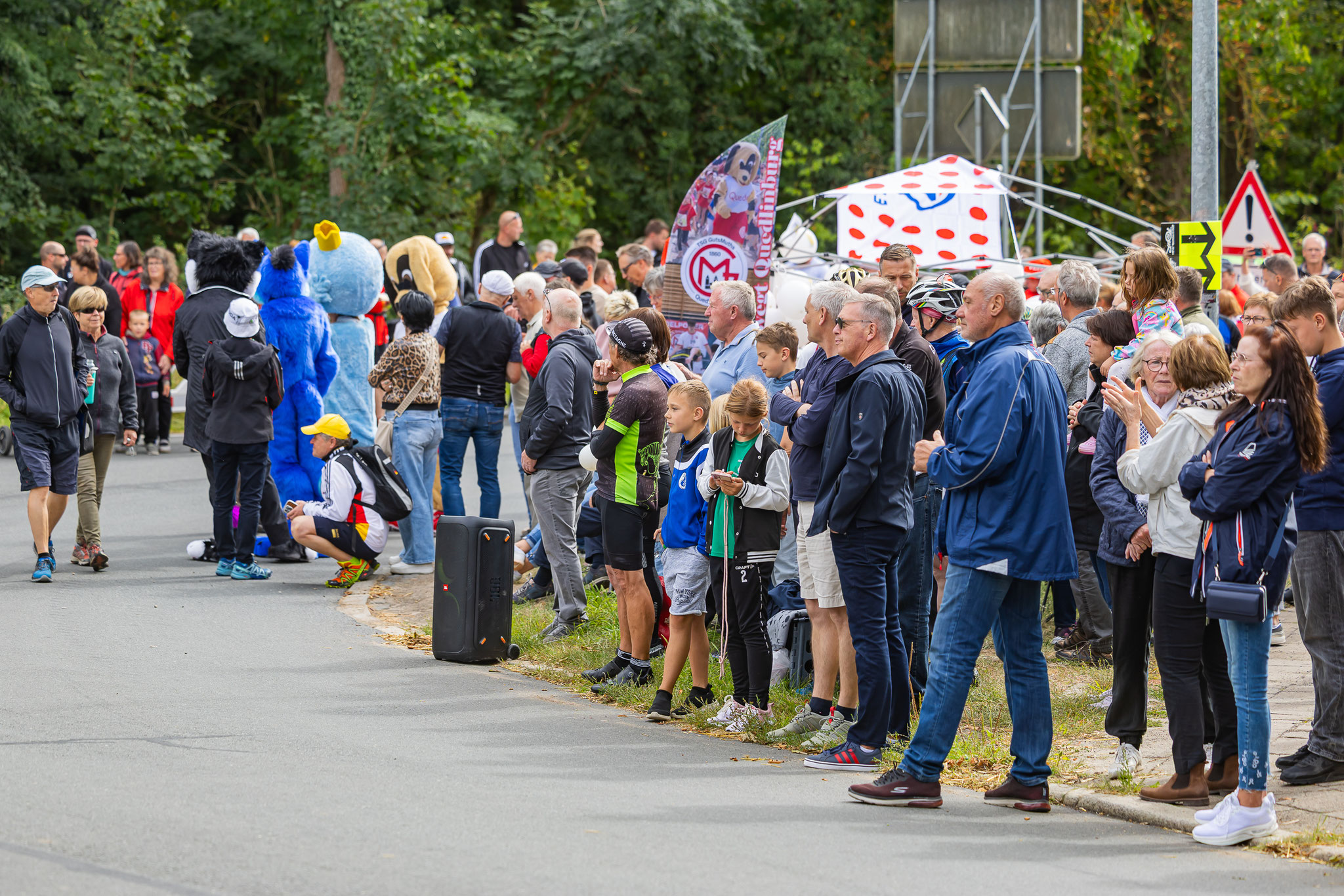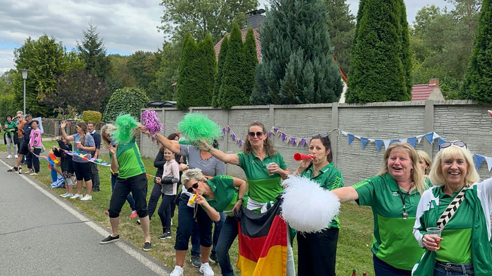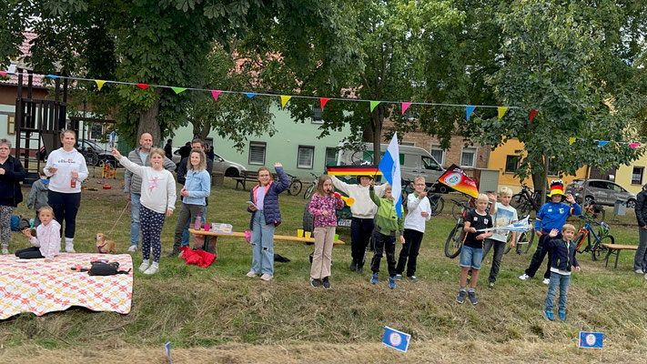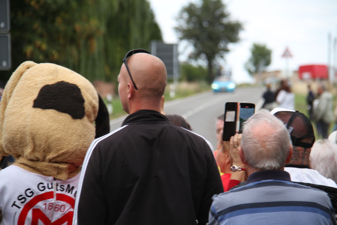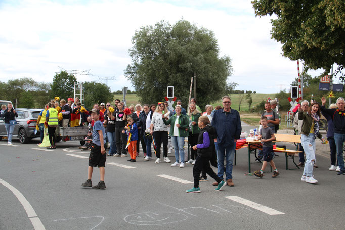 2. Preis (150€) Adersleben Eins. Hier hat die TSG GutsMuths die Radfahrer in den Vereinsfarben empfangen. Der Quedlinburger Jubilus, das Vereins Maskottchen Quedel und weitere Fans in bunten Tierkostümen waren ein besonderer Hingucker. Andere Gruppen wie die Diakonie Halberstadt unterstützen.