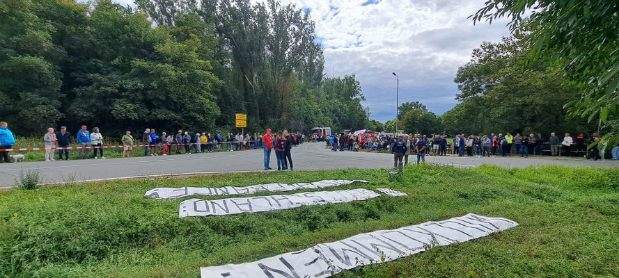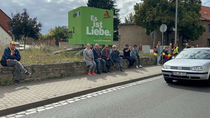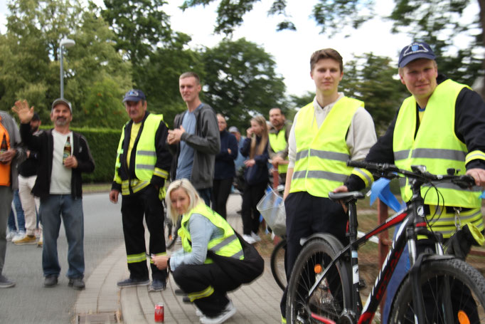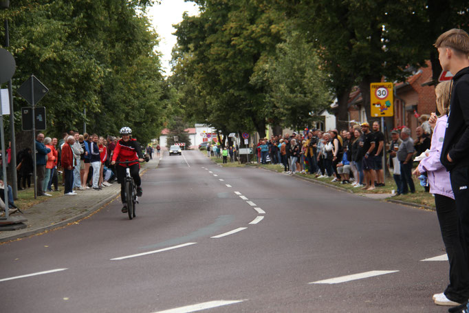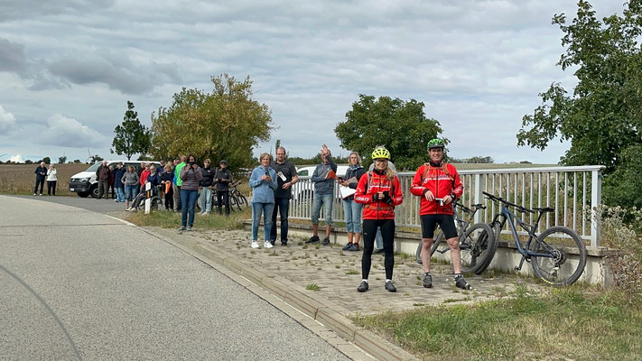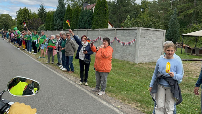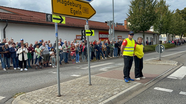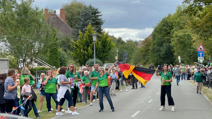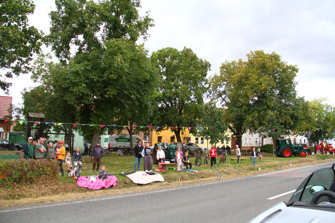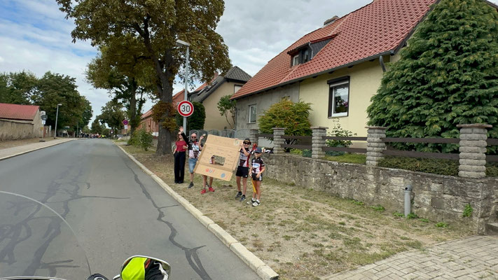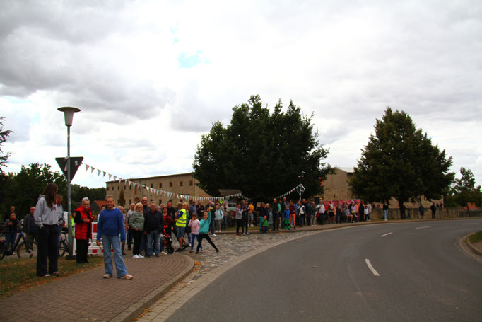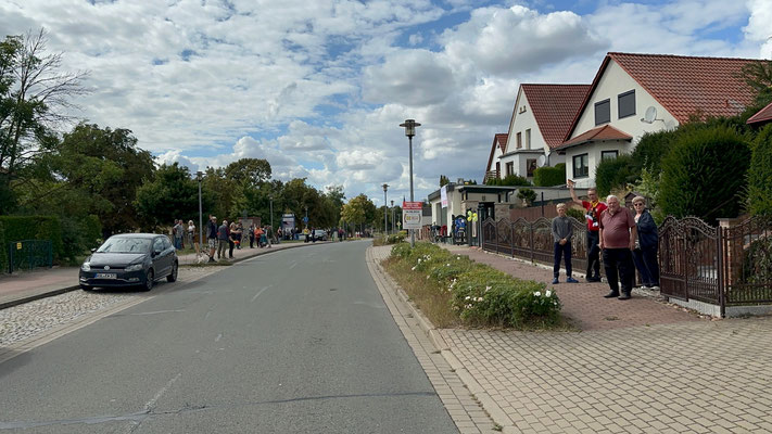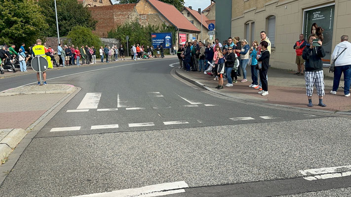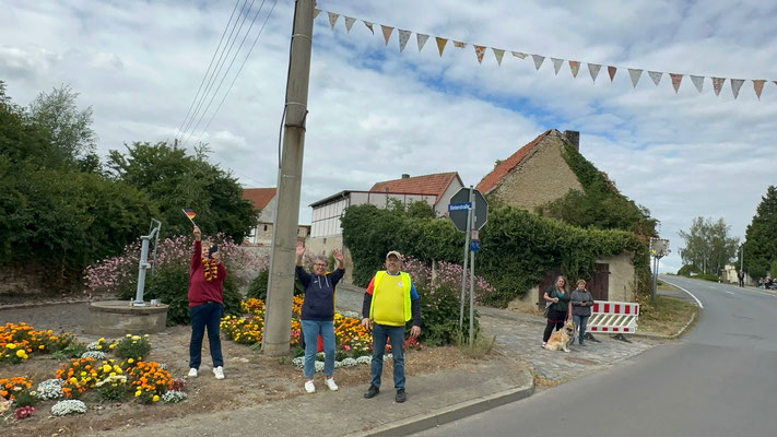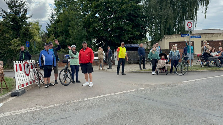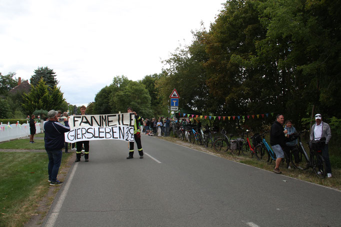 Die Preisträger für den Salzlandkreis: 1. Preis (250€): Giersleben. Hier waren die vielen Zuschauer mit dem Rad gekommen, diese wurden in einer langen Kette entlang der Strecke aufgereiht. Alt und Jung begrüßten die Radsportler mit selbst gestalteten Spruchbändern und Fahnen.