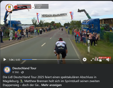 Rennen wurde international übertragen. Hier zeigt das französische Fernsehen Bilder aus Hausneindorf und Hedersleben. Aufgrund des Urheberrechtes kann das Video leider nicht gezeigt werden.