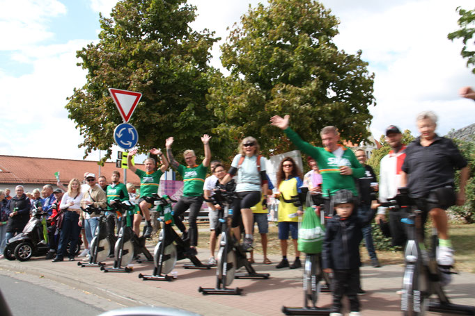 2. Preis (150€) Der Magdeburger Kreisel Aschersleben mit sportlichen Fans auf Spinning Rädern und Tanzgruppen. Das am besten besuchte Stimmungsnest des gesamten Streckabschnitts von Salzlandkreis und Vorharz.