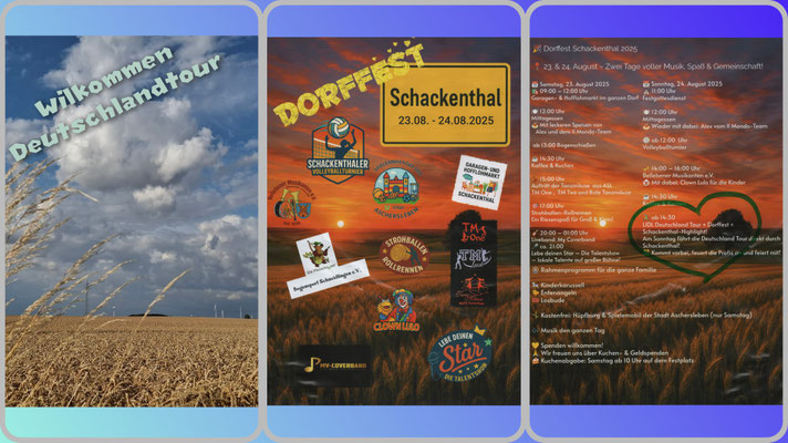 Auf dieser Karte werden nach und nach alle uns gemeldeten Stimmungsnester eingetragen. In Vorbereitung sind Picknicks, Musikpartys, Kinderfeste... In Schackenthal wird sogar das ohnehin geplante Dorffest kurzzeitig zur Tour-Hochburg.